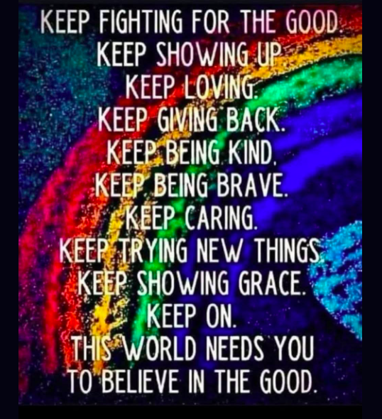 When this nightmare ends - and it will end because all nightmares do and because we will make it happen - what will we replace it with? I believe that we are already building the world we want to call home once we've defeated those consumed by greed, hatred and delusion. We are setting the foundations for a better world with our acts of loving kindness. Brave or gentle, big or small, loud or quiet, our acts are contagious. See them. Name them. Appreciate them. Share them.