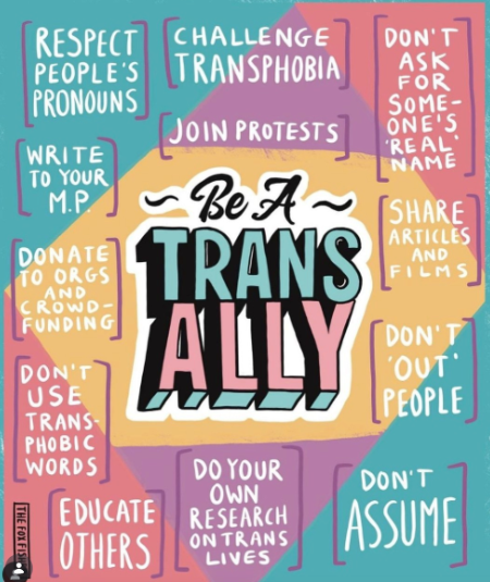 Next we have the people who are not necessarily allies, but are curious and open-hearted enough to want to try to understand what's going on for their trans neighbour/colleague/friend/relative. I have been very vocal about being a 'transparent' and, mainly the response has been positive. People can see how much I love my kiddo and so they ask questions to better understand. When speaking with other parents of trans kids new to this journey, when they see how easy it is for me to love and accept my kiddo, I can visibly see them relax. The more we speak freely and lovingly about trans folk, the more we open space for people who want to learn about trans lives.